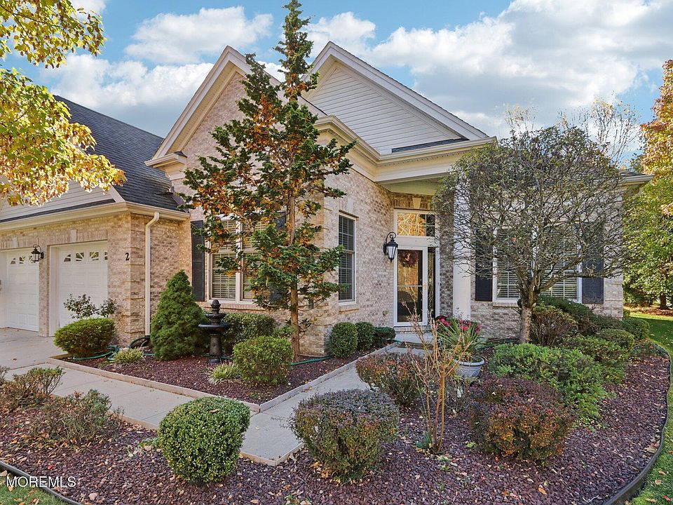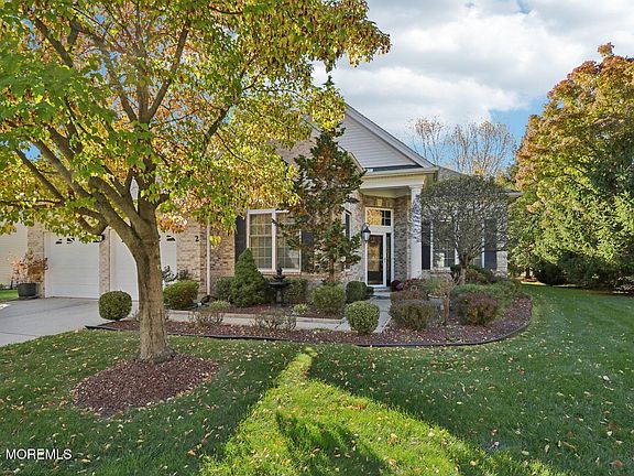 On a softly winding road in the picturesque, gated adult community of Riviera Freehold , sits this sprawling 2 bed, 2 bath Preswick model home. With porcelain floors and recessed lighting throughout, 10'ft ceilings, decorative moldings and tray ceilings, this home has elegant touches in every room. The kitchen features cherry wood cabinets, a breakfast bar, granite countertops and new Samsung appliances. The kitchen opens up to the living room, perfect for facilitating social gatherings. The patio is your go-to for coffee and breakfast, lunch or dinner! You'll love the master suite, with a soaking tub you'll want to sit in every day. Double sinks and a stand up shower complete this spa-like suite. Amenities include an indoor pool, gym, tennis + pickleball courts and so much more.