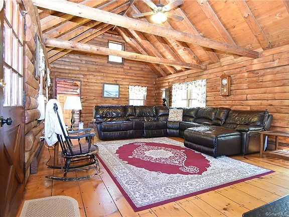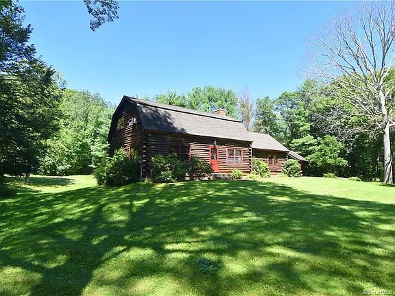 The Great Escape! Custom 4 Bedroom Log Home with 5 car garage and barn! You can huff and puff and guess what? This quality well built log home is in perfect condition and will last the test of time! Gorgeous wide board floors throughout most of the house! Enter into the oversized cathedral ceiling family room with a soaring floor to ceiling stone fireplace and wood stove to warm your fancy! Open eat in kitchen with built in charming masonry bakers oven and warming hutch. Formal dining room, first floor bedroom, 3 bedrooms upstairs, oversized finished walk out basement with additional approximate 1000 sq ft family room and fireplace, additonal room on the other side with a full bar. Gorgeous private back yard bordering farm land. Additional traditional barn perfectly sited on the property. Patio pavers and deck embracing the back yard views. The oversized garage will accommodate any size commercial truck. Perfect for a car enthusiast. Great location near highway and shopping!