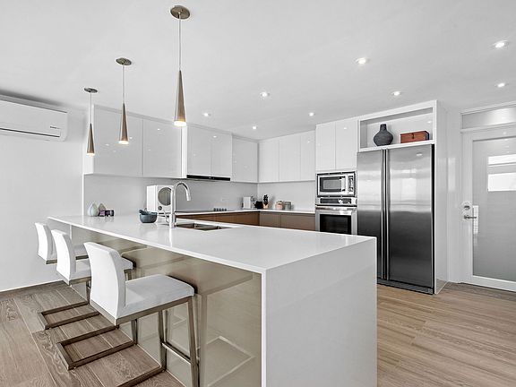 Paradise awaits in the ultimate waterfront beach home. Located within the prestigious neighborhood of Ocean Park, San Juan's most sought-after gated beach community, you'll find this 5-bedroom, 5.5-bathroom, 4,863 square foot townhouse. Meticulously renovated over four floors, this architectural marvel features cathedral ceilings and open concept living. Built in 1998 by famed architect Mario Montilla and reimagined by Carlos Salazar in 2023, the design is focused on optimizing the privileged beachfront location and its unique surroundings. Witness the dramatic beauty of the ocean from the moment you walk in, as 20-foot ceilings and a wall of windows create panoramic vistas of the Atlantic Ocean. Bright and airy, the first two floors of living space provide many options for entertaining or relaxing. The modern kitchen with quartz countertops, double dishwasher, Smeg and Kenwood appliances, faces the ocean. Custom oak woodwork and cabinetry in blue hues adorn the bar, complete with an industrial ice maker and a beverage cooler. A flex room and full bathroom currently outfitted as a music studio are the prefect home office or additional bedroom. Retreat to the upper floors where sumptuous double primary suites on each floor feature ensuite bathrooms with Grohe fixtures, custom Italian ceramic tile, double vanities, soaking tub, and steam shower. From the highest floor, experience the crowned jewel of this magnificent residence - the substantial terrace with 180-degree views of the beach and ocean. This perfect oasis is conveniently outfitted with a wet bar, grill, outdoor kitchen, outdoor shower, and Vondom furniture. A custom electric pergola is outfitted with lights and a windscreen to maximize comfort at any time of day. Every modern convenience has been considered in this masterfully recreated abode. This residence has full backup diesel generator, 2 water cisterns, electric storm shutters, and industrial grade garage doors. The garage fits 4 cars with a private entry directly into the home for discretion, security, and convenience. Garage is also customized for ample storage of all your beach gear. In addition, a private outdoor side yard can be outfitted with a jacuzzi, pool, or garden. This prime location is a mere 8 minutes from the Luis Munoz Marin International Airport, the city's best schools, and the dynamic nightlife and gastronomy of Condado Beach. Ocean Park is a dreamy, tree-lined beach community within the city, this rare find in the heart of it all can be yours today. Also offered for sale at $4,125,000.