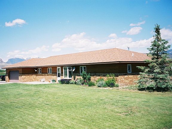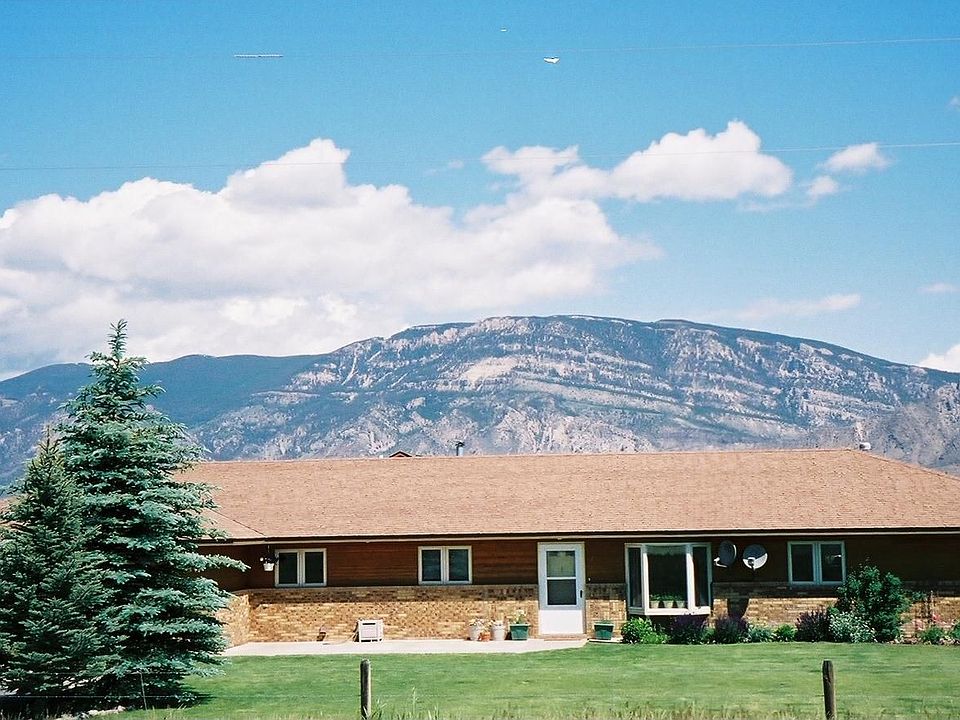 Enjoy beautiful mountain and lake views in the scenic valley of the South Fork of the Shoshone River. Peaceful country living, but only 10 minutes from town. Enjoy easy access to Yellowstone National Park, hiking, hunting, and fishing. This comfortable 3 bedroom, 2 bath home has a home office and bonus room. Open floor plan with vaulted ceiling. Cozy brick fireplace. Large kitchen with lots of cabinets, a large island, and hardwood flooring. 3 heating sources. 3 water sources. Mature landscaping, underground sprinklers, and a large corral ready for horses.