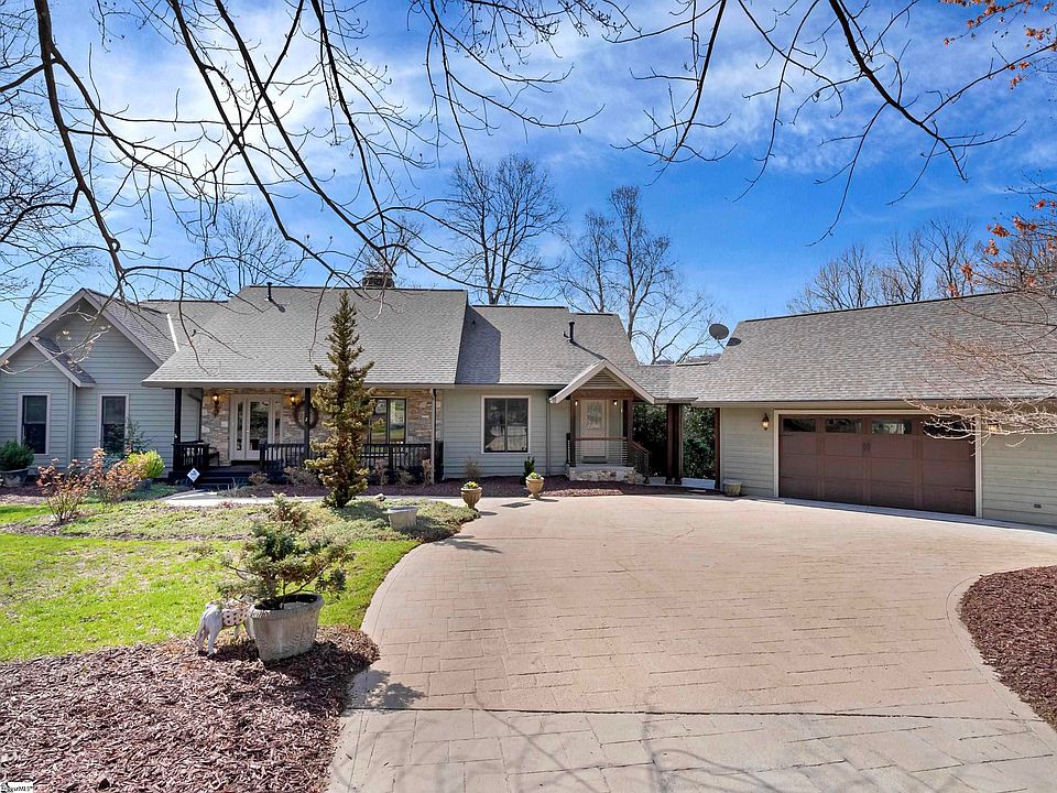 Come home to The Cliffs at Glassy, The Cliffs’ original gated golf and wellness community atop Glassy Mountain in Landrum, SC. Incredible mountain home with mountain character set towards the peak of The Cliffs at Glassy with gorgeous landscaping, panoramic south-oriented mountain views, and conveniences to all of the amenities. Beautiful curb appeal with a rocking chair front porch, driveway with custom pavers, and beautifully landscaped flower beds featuring beautiful spring flox and full summer color. The welcoming main level includes the primary suite with a vaulted ceiling, a large great room open to a stunning Glassy Mountain view connecting effortlessly to a bright and open kitchen, formal dining room, a sitting room perfect for conversation away from the kitchen crowd, and a large study. Warm up on fall days by the stacked stone gas fireplace in the great room that features a soaring ceiling, hardwood floors, and direct access to the deck. The kitchen comes equipped with granite countertops, stainless steel appliances, including a gas range with a 4-burner cooktop and griddle, and a connected breakfast room with large windows open to the views towards Glassy Chapel, Paris Mountain, and Greer. The generous primary suite walks out to the deck and also boasts an ample walk-in closet space and a plush bath with dual vanities (with a connected makeup vanity) and a separate jacuzzi tub (with view) and a walk-in tiled shower. Watch the twinkling night-time lights in the distance along the extensive rear deck with its southern-facing exposure that expands nearly 180 degrees. The lower level is an ideal space for entertaining and hosting house guests with two substantial bedrooms with great natural light soaking into these private spaces and a recreation space. An oversized recreation room includes a bar area and a stacked stone wood-burning fireplace and is the perfect size for adding a billiards or ping pong table. Kick back and relax along the partially covered flagstone patio, with surrounding massive rock outcroppings, which is directly accessible from the recreation room. Plenty of storage space is available with a spacious storage room on the lower level and also various closets throughout the house. The fitness room is also a fantastic space that can also be used to house additional overnight guests or provide the extra quiet office space sometimes needed. A sizable wine closet rounds out the remainder of this floor. The detached two-car garage with a covered breezeway to the house was recently added in 2019. Enjoy unmatched, walkable convenience to the Glassy clubhouse and golf course and only a short drive to the wellness center with a pool and tennis/pickleball courts. Other notable features include: a 500-gallon propane tank, two newly replaced separate septic tanks and 40 year roof. Furnishings are available with a separate bill of sale. Meticulously maintained home in The Cliffs at Glassy set in the perfect location for views and elevation while taking advantage of all the community’s world-class amenities! A Club membership at The Cliffs is available with this property giving you access to all seven communities.