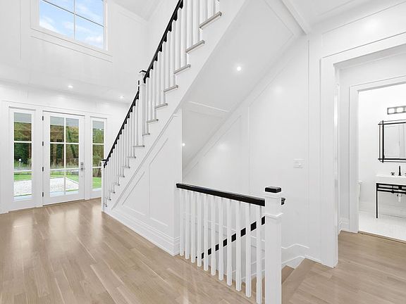 2 Rawson Road, Sag Harbor. Located in the Rawson Estates beachfront community in Sag Harbor comes a new luxury residence from the Curto Building Company, Peter Curto. Just completed, this modern farmhouse inspired new construction combines the open floor plan with transitional finishes to define today's modern living. This new development has been meticulously designed and crafted with quality materials, fine finish and attention to detail. With brilliant sunshine, the stately white shingles glow in crisp contrast to the high gloss black and aluminum accents. Boasting 4,000 sf with 5 bedrooms and 5 and one-half baths. Grand paneled entry foyer flanked with formal dining that leads to the custom Ciuffo Cabinetry eat-in Chef's kitchen equipped with a full suite of Subzero and Wolf, Bosch appliance package, butler's pantry, and wet bar. The open great room is anchored with a linear gas fireplace and flooded with natural light through a wall of glass sliders that leads to the expansive covered deck. The main floor Jr. master suite along with side entrance mudroom, full pool bath and laundry completes the first floor. Upstairs a grand master suite with sitting area fitted out his and her closets, spa bath appointed with a mixture of stone, glass and designer fixtures along with custom Ciuffo vanities. Three additional guestrooms and laundry complete the second floor. Outback a secluded 44 foot heated Gunite pool and professional landscape package. A 2 car garage and an additional 2500 sf full basement ready to be finished for additional living space complete this offering. Just moments from the Noyac Golf Club, Morton Wild Life, Long Beach and equidistant to Bridgehampton, Water Mill, Sag Harbor and Southampton. The community's residents-only beach is moments away and offers majestic sunsets on the bluff overlooking Peconic Bay. 2 Rawson Rd., Sag Harbor
