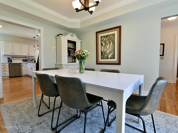 Move right into this beautifully maintained Colonial on 1.7 acres in a desirable neighborhood within Saratoga schools. Features 3 beds, 2.5 baths, a bright open kitchen flowing into a cozy living room with stone fireplace and dining room with tray ceiling. Upstairs landing makes a perfect office. Primary suite includes a large walk-in closet and spacious bath. Second-floor laundry adds convenience. Enjoy the nicely finished basement with wet bar. Step out onto a stunning new patio and take in your expansive yard. Just 7.5 miles to downtown Saratoga—location and lifestyle in one!