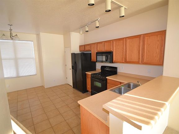 Sunlit and cheery with a great corner lot site, this split bedroom home features an open kitchen with breakfast bar and nook, tile flooring, pantry, laminate counters, and full appliances. The spacious master suite has a large walk in closet, oval tub and separate shower, and dual vanities. Enjoy the walking trails and serenity of Rancho Viejo