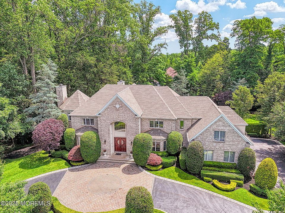 Welcome to 2 Red Oak Run, an extraordinary custom estate offering 5 bedrooms, 4 full baths, and 1 half bath, set on 2.5 private acres in Holmdel's prestigious enclave, The Gables. This stately 6,368 square foot Colonial blends timeless elegance with modern luxury, delivering an exceptional lifestyle for the discerning buyer. A dramatic two-story foyer sets the stage, opening to expansive, sun-drenched living spaces with Brazilian cherry hardwood floors, soaring ceilings, and impeccable custom millwork. The formal dining room impresses with a tray ceiling and connects to a full butler's pantry with built-in wet bar—great for entertaining. Eat-in kitchen is outfitted with custom cabinetry, premium stainless steel appliances, stone counters, and an island. A sunken great room with fireplace anchors the main level, complemented by a formal living room, private office, and custom mahogany bar for upscale entertaining. Upstairs, the luxurious primary suite features double walk-in closets, a private sitting room, and a spa-like bath with dual vanities, soaking tub, and glass-enclosed shower. Four additional bedroomstwo with en suite bathsoffer ample space and privacy for family or guests. Outside, the resort-style grounds include a heated Gunite pool with waterfall, relaxing spa, expansive paver patio, and a fully equipped outdoor kitchen with granite counters and built-in grill. Surrounded by mature landscaping, the property offers complete privacy while being conveniently located near top-rated Holmdel schools, parks, shopping, and major routes including the Garden State Parkway for an easy NYC commute. With luxurious finishes, gracious proportions, and an unmatched setting, 2 Red Oak Run is a rare opportunity to own a truly exceptional estate.