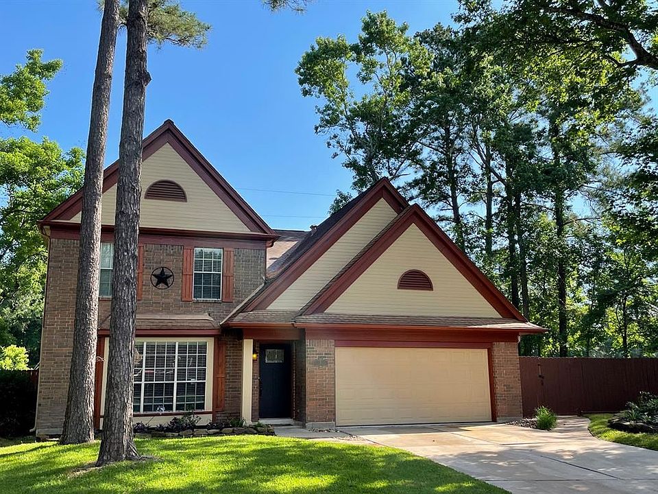 TUCKED AWAY ON A QUIET CUL-DE-SAC...Home features 4 bedrooms, 2.5 baths, 2 car attached garage, combinationliving-dining rooms, large family room, gas log fireplace, spacious kitchen/breakfast area and all counter tops are granite. The master suite is upstairs and has a large bath with garden tub, separate shower and walk-in closet. The huge backyard backyard adjoins a greenspace (no back neighbors) and features a large deck, separate storage shed and full sprinkler system. Located close to I-45 for commuting, Lake Conroe for recreation and The Woodlands & Grand Central Park for shopping and dining. CALL FOR AN APPOINTMENT TODAY!