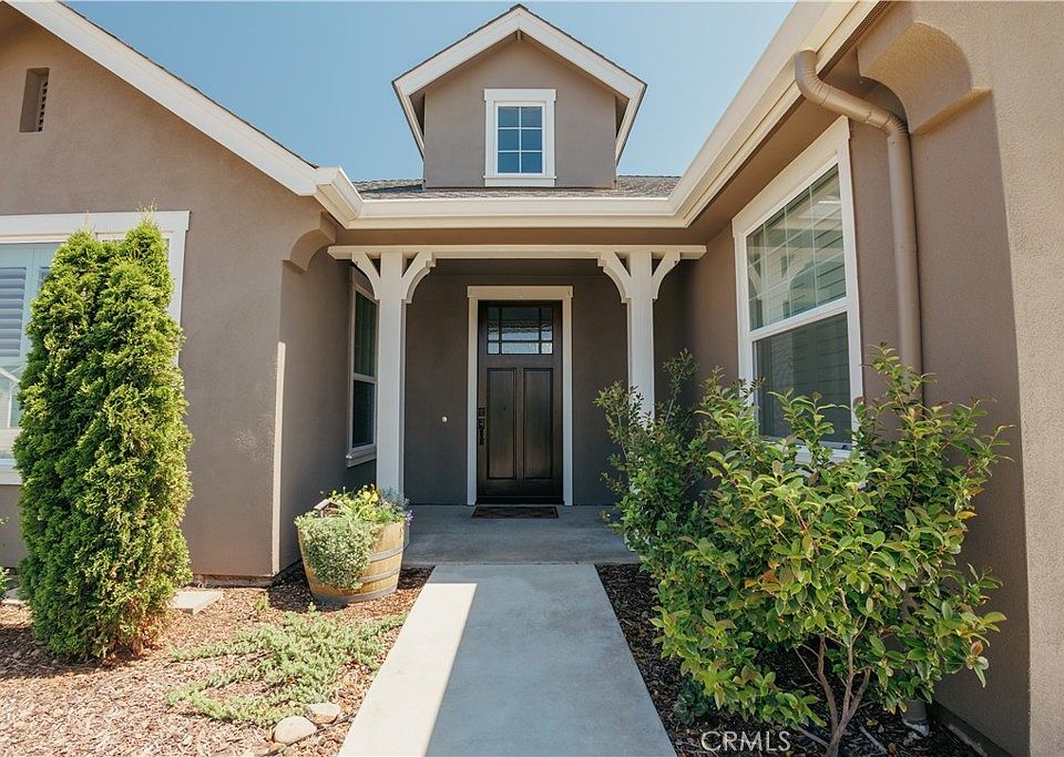 Welcome to this stunning 4 bedroom, 2.5 bathroom home with a large office nestled on a big corner. Located just steps from hiking and biking trails that will lead you to Upper Bidwell Park and the nearby nature preserve. Step through the custom front door, where you will be greeted by tall ceilings, beautiful tile flooring throughout, windows with hidden tilt shutters, and an inviting open floor plan. Just as you enter you will pass by the large office with custom French doors. The spacious living room includes a large TV with a custom sound system, a custom gas fireplace, and a view to the backyard. Take entertaining to the next level in this fully equipped kitchen. It features quartz countertops, updated shaker cabinets, an oversized farmhouse sink, a gas range, and double ovens with a beautiful breakfast bar. The large primary suite offers access to the backyard and features a beautiful soaking tub, a walk-in shower, and an oversized walk-in closet. This home also includes a large 3-car garage, owned solar, drought-tolerant landscaping, a security system, a tankless water heater, a whole house fan, and hookups for a gas grill with a beautiful covered patio for hosting. Don’t let your dream home pass you by.