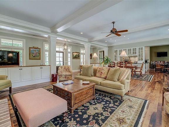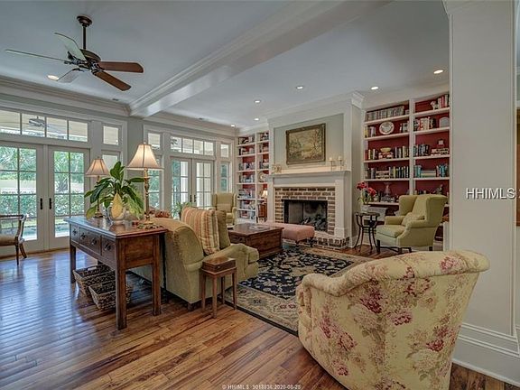 Amazing opportunity to start living your best life in this beautiful, custom built home in the incredible Long Cove community. This home offers details such as detailed millwork, antique maple flooring, plantation shutters, fireplace, 2020 roof, gourmet kitchen with top of the line appliances, 2020 roof, 3 car garage, screened porch, captivating golf views, and swimming pool. Exceptional open great room floor plan with 3 bedrooms on the main level, a spacious master suite/bath, office, and bonus room. Create family memories today with amenities to include Pete Dye golf course, marina, playground, gardens, tennis, pickleball,Bocce,dog park.
