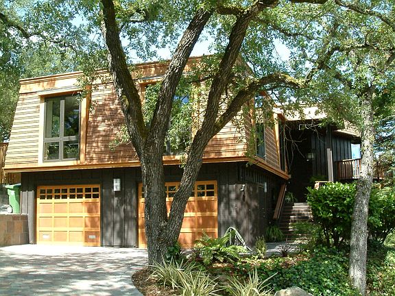 This beautiful oasis could be yours. Com inside and take a peek at contemporary beauty tucked away in a grove of oak trees. This home boasts maple hardwood flooring throughout. The windows and all doors throughout the entire house are PELLA. Pass the wood burning fireplace to the kitchen with granite counter tops and island, stainless steel appliances, solid cherry wood cabinets, skylights, recessed lighting, and a wine refrigerator. The master bedroom suite is gorgeous with a walk in closet, master bath, French & sliding doors leading outdoors to the jacuzzi. The outside courtyard and upper decks are great for entertaining. Down the spiral staircase is an entertainment room, library, and office plus a sizable 650 bottle wine cellar. Spiral & classic staircases between main & second level. The 2017 foam roof carries a 15-year warranty. Stone tiles in the house are marble and solar panels are sufficient for the entire house.
