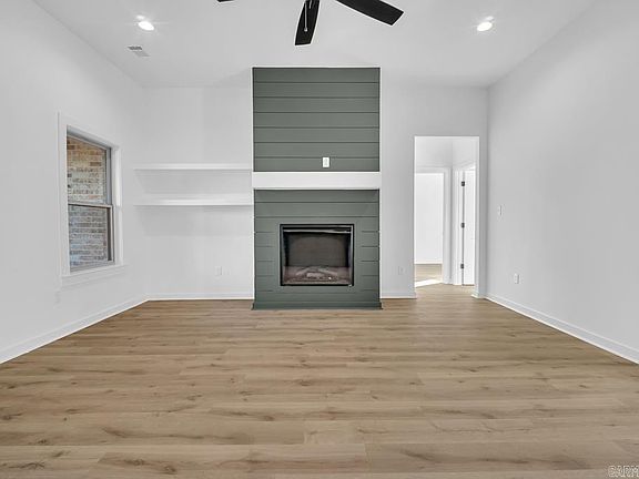 This newly constructed 4-bedroom, 2-bath home offers 1,799 square feet of thoughtfully designed living space on an oversized corner lot in the desirable Lewis Cove neighborhood. Built by Starkey Family Construction, this site-built home on a concrete slab delivers quality craftsmanship and modern finishes throughout. Inside, you will find quartz countertops, custom cabinetry, and durable LVP flooring in every room. The split floor plan provides privacy for the primary suite, which features double walk-in closets and a well-appointed bath. The open-concept living area is anchored by an electric fireplace and flows seamlessly into the kitchen, complete with a large island, breakfast bar, spacious pantry, and dedicated dining area. Step outside to the oversized back porch, perfectly positioned to face east—ideal for enjoying shaded afternoons and evenings with family and friends. Additional highlights include a separate laundry room with a lint clean-out, a two-car attached garage, public water and sewer through Wooster Water, and all-electric efficiency. Located within Wooster city limits with a Greenbrier address, the home sits directly across the highway from Wooster Elementary a