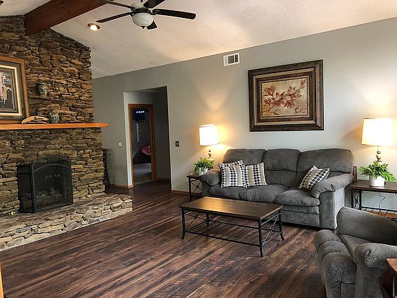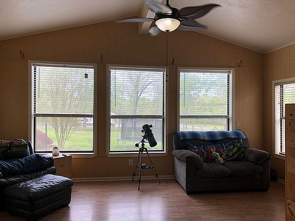 Spacious 3 bedroom, 3 bath home on 1.25 acre lot. Massive doublefaced natural rock fireplace with remote controlled gas log's. Vaulted ceiling in living room & dining room. Large sunroom, currently used as a 4th bedroom. Pullman style kitchen has a large pantry and an abundance of cabinet space. Guest bath has an over sized tile shower. Crawl space funtions as a storage/work and safe room. Recent improvements have been made as well as more in progress. Back lot is fenced with vehicle access through a gravel drive and double gate. Shop/shed, hot tub, new HVAC and hot water heater. Sold as is.