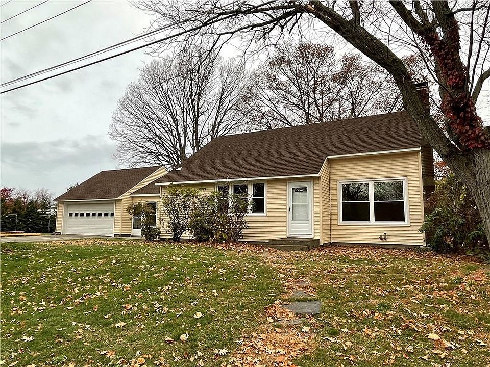 NEW ROOF, NEW SIDING ALL NEW WINDOWS, NOVEMBER 2022. Large level corner lot, large full basement, big attached 2 car garage, and enclosed patio between kitchen and garage. Formal dining room, fireplace in living room, and conveniently located to all services and highways. 2 bedrooms on main level with full bath. Walkup attic. Plenty of hardwood floors too. Municipal water. Full length center I beam joist in basement. Come and see!!