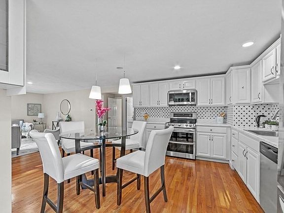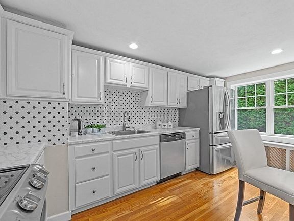 Welcome home! This beautifully RENOVATED ranch has a FULLY FINISHED BASEMENT & features a beautiful PRIVATE YARD that is complete w/ a large patio ('20) & built-in gazebo. The renovated WALK-OUT basement features a separate entrance, full bath, office space, family room, laundry area & bedroom! Making it a perfect space for extended family & guests! Privacy is one of the many great features of this home! The 8 -12 ft fencing surrounding this LARGE backyard offers you the privacy that many desire! In its interior the home has been masterfully updated. Updates include freshly painted kitchen cabinets, gorgeous spa-like bathrooms ('20 &'22), upgraded countertops ('22), SS appliances, new backsplash, freshly refinished HW floors, HEATING SYSTEM ('19), gutters ('20), new lower level flooring, & more! Additional features include an ABUNDANCE of storage space in the lower level & attic AND the homes close proximity to major highways (95, Rt. 3) and the Burlington Mall area!