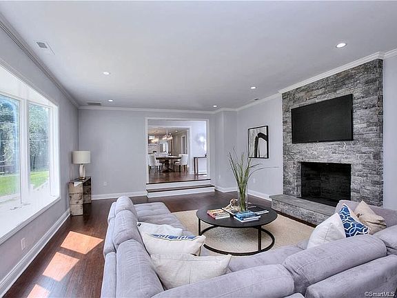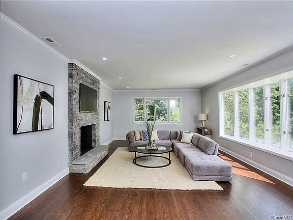 Welcome Home! Move right in to this stunning, sunny ranch in the sought after neighborhood of Greens Farms. No stone was left unturned in the impeccable renovation. The open floor plan graciously lends itself to today's lifestyle for any buyer. Flow from the mudroom to the gorgeous chef's kitchen with marble counters and then on to the dining room. Relax in front of the fire in the grand living room before heading to the master suite with plenty of closets (including a walk in!) and elegant master bath featuring marble floor and Carrara marble counters. Down the hall are two bedrooms connected by a Jack and Jill bathroom as well as a powder room for your guests. Enjoy the custom built office with a wall of windows offering limitless natural light. As if that weren't enough, head downstairs to the lower level and find the over-sized, walk-out family room with plenty of windows and a fireplace, generous laundry room, gym or playroom, full bath and an extra den or office complete with closet and windows. An ample storage room and huge mechanical room round out the lower level. New roof, new HVAC with 3 zones, refinished hardwoods or new floors in every room, updated electrical and more make this a turn-key for even the most discerning buyer.