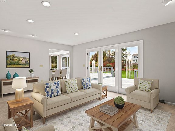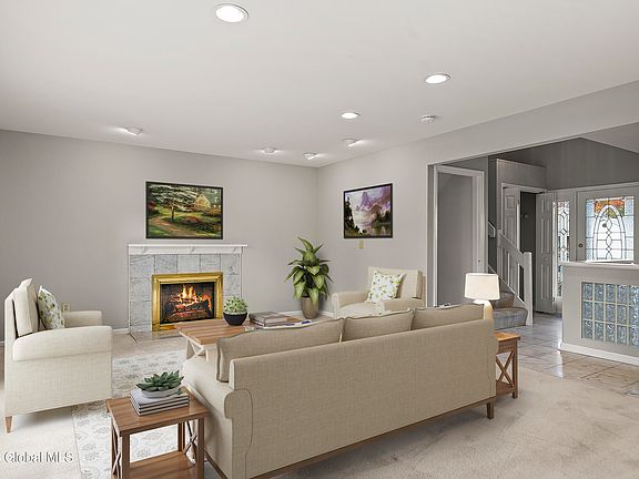 Fabulous Find! Wonderful sun-drenched 4-bedroom, 3-bathroom colonial home situated on a beautifully landscaped half-acre lot. Gracious living room with fireplace. The kitchen offers ample cabinetry, an island, and a cozy breakfast nook. The inviting primary suite features cathedral ceilings and a spacious bath, creating a perfect retreat. A first-floor office/bedroom and a finished basement enhance the home's appeal. Host gatherings with family and friends on the expansive deck overlooking the private yard. In 2023, newly installed solar panels offer free electric service, with the sole expense being a monthly delivery fee of about $30. You're just steps away from the Erie Canalway Bike Trail and the scenic Mohawk River. Welcome to your new home!