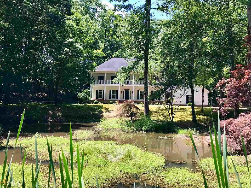 Stunning private setting in the Rivermont Subdivision. Winding drive approach across the babbling springs and past the pond to the 2 Story Southern style home on 5.6+/- acres. Double front porches, tall ceilings, spacious rooms. Great storage. All bedrooms are upstairs. Expansive master suite. Main level living, dining, family room with masonry fireplace, big laundry/mudroom, breezeway to over-sized 3 car garage, workshop area and huge walk-up bonus/rec room/apt w/bath above the garage. Kitchen needs some updating but has great space. Beautiful property! Priced to sell!.
