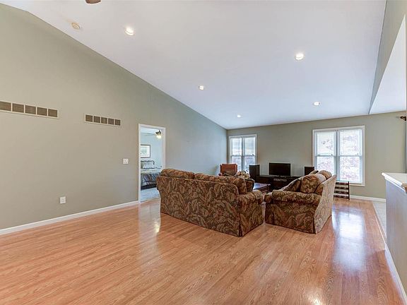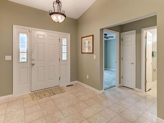 Open floor plan with a spacious vaulted ceiling great room which opens to dining area. The large bar counter of kitchen overlooks dining and great room area. The kitchen has white cabinetry and breakfast room. The master suite has a large bathroom and walk in closet. The divided bedroom plan features a front bedroom perfect for guests or a home office and a full guest bath off hallway. There is a finished walk out lower level with a large family room, bedroom with egress window and a full bath. Huge storage room in basement and a two car garage. Lovely complex in Dardenne Prairie. Location: End Unit