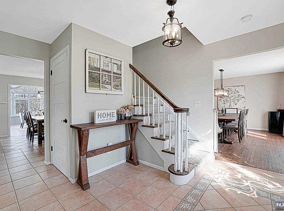 Exceptional Tudor-Influenced Center Hall is sequestered on over 1 acre of professionally landscaped, private property on a quiet cul-de-sac in Montvale. A welcoming foyer invites you into this lovely home's formal dining room and formal living room with recessed lighting and gorgeous hardwood floors. Family room has a brick wood-burning frpl and built-in shelving. Updated gourmet kitchen w/ light oak cabinetry, granite counters and inlaid tile floor. Breakfast area opens into a spectacular conservatory, with vaulted ceiling, walls of sun-drenched windows and door to the deck and lower paver patio. A bedroom/office, powder rm and laundry area round off the 1st floor. The second floor hosts the master bedroom suite w/walk-in closet, and updated master bath, three additional large bedrooms and full bath bath. Many upgrades including a newly redone roof, sprinkler system, alarm system connected to fire and police, two new A/C units, water purification system and so much more.