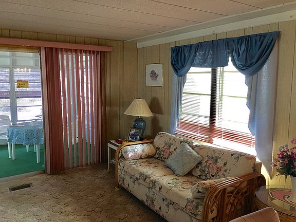 Total Furnished even TVS **2 Bedrooms, 2 Baths and a 12x24 Garage as well as a Carport. Lots of Storage space in home also this is a must see, 12x24 Florida room with windows and screens , ceiling fans in every room ac has a transferable warranty . Great Location , Community has clubhouse and Pool Just bring your tooth brush