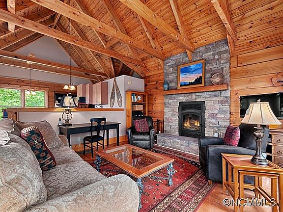 Pristine log cabin on 2 acres perched atop Fairview Forest at 3,800 ft with year-round, long-range views. Quality construction, move-in ready, open floor plan, cathedral ceilings with beams, stacked stone fireplace, stained concrete countertops, gourmet kitchen with island bar. Amazing sunset views from the living room, kitchen, breakfast nook, and deck. Everything you've dreamed of in a mountaintop cabin.