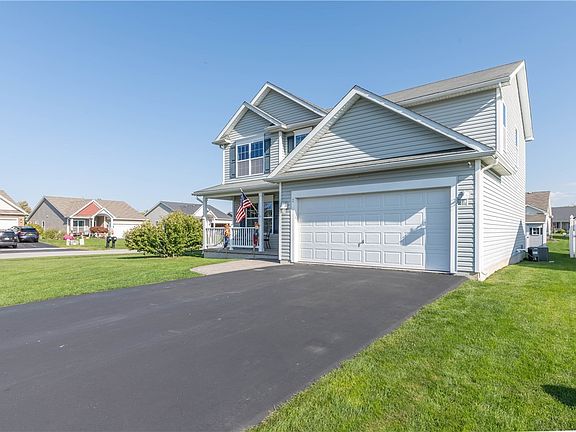 Welcome home to this beautiful 4 bedroom, 2 ½ bath North Greece Colonial! This home is a newer build (2011) which means you won’t have to lift a finger. Open floor plan, gleaming floors (new carpet in the family room (2022), loads of natural light opens this space right up. Spacious open Kitchen. The large mud room has custom built cubbies (2013)! The beautiful partially finished basement (450sq.') has another bedroom with a huge egress window. The basement also includes superior walls and pex pluming! On the second floor there are 3 spacious rooms including one of the bedrooms that has a walk-in closet and second floor laundry! In the master suite you will be greeted with plenty of space with large walk-in closet! Outside, this house is on a beautiful corner lot with a huge deck (updated with trex boards (2021) that will be perfect for entertaining on any occasion! This home also features a two-car attached