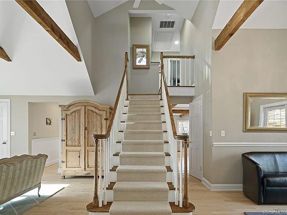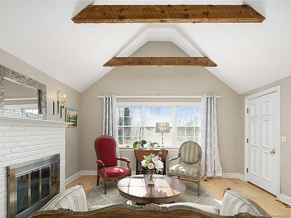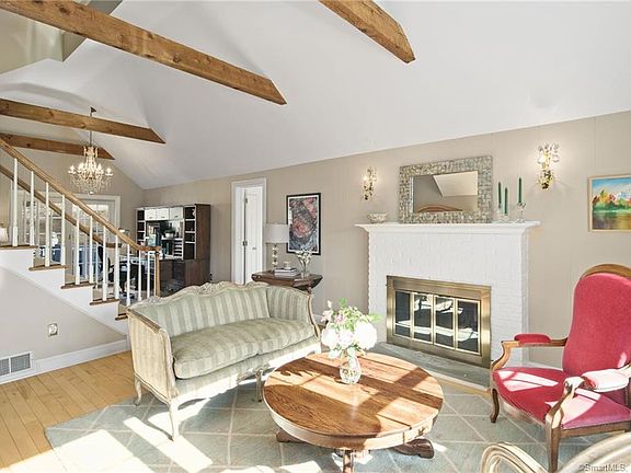 Charming Colonial steeped in details. Perfect and move in, it is located on a quiet lane in North New Canaan with just a few other homes. Private, gorgeous setting. Open floor plan with 2600 sq ft of living space and Southwest exposure. The main floor is a delight as the rooms flow into each other. Gorgeous maple flooring, updated open kitchen with maple cabinets and quartz counters, vaulted ceilings, first floor bedroom, Thermopane windows and sliders and historic beams throughout. The circular Belgium block lined driveway leads to a picturesque two story red Pole Barn/garage with extra storage and full second floor bonus room for play, entertaining, gym or office with separate exterior entrance. Spacious attractive private Trex deck with 5 person Hot Springs Hot Tub overlooking the glorious gardens with stunning plantings and fountain. Recent 2021 improvements incl Portable Generator, 2nd floor Heat/Ac pump and well pump and water pressure tank. This one of a kind delight is a treasure that will not last on the market.