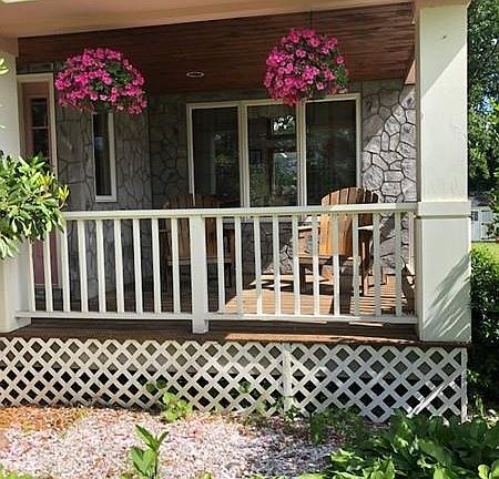Here's the listing you've been waiting for!! Beautiful contemporary home on a quiet dead end street with lake views. From the stone front with the inviting front porch this home has it all!! Open concept living room with floor to ceiling brick fireplace and cathedral ceilings. Large kitchen with center island and stainless appliances. Enjoy your summers in the sunroom connecting to the pool. Finished basement includes family room with fireplace, built-in bar and extra bedroom. Professionally landscaped lot with stunning perennial gardens. Must see!! Price Reduced!! Open House Sunday, July 21 from 3PM-4:30PM.