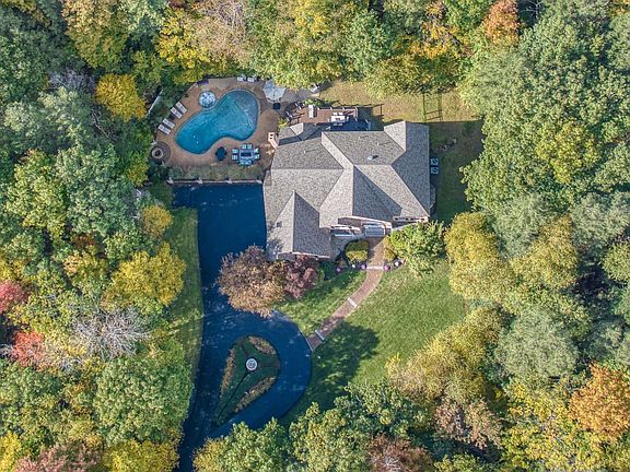 Beyond the automated gated entry is a private lifestyle-property designed for grand-scale entertaining or your place of retreat. This exquisite Boutin-built brick home, nestled on 3.09 acres in Laurel Woods, boasts 5,823 sq ft of versatile living space. The 2-story foyer with curved staircase sets the tone for elegance. The formal living/music room flows seamlessly into the dining room. A private study provides a quiet work retreat. The center-island kitchen, equipped with stainless appliances, opens to the 18ft vaulted ceiling family room with a brick/granite wood-burning fireplace. Entertaining continues outdoors on the 15ft x 32ft Trex deck and paver patio connect to the well-appointed outdoor stacked stone/granite bar kitchen with grill, refrigeration, pizza ovens and sink and to the heated Gunite pool and spa areas creating a resort-like retreat in your backyard. The primary suite has a spa-like bath and a flex-use room. There are three additional ensuite bedrooms, one featuring a private living room - ideal as an au-pair or in-law suite. The walk-out lower level features a professional media room with recliners, projector, 96" screen, sound system for ultimate entertainment, and an office (or au-pair suite), rec room and ¾ bath. Meticulously maintained and conveniently located minutes to the airport. Award-winning Bedford schools with International Baccalaureate program. Experience the luxury and comfort of this exceptional home. Schedule your VISit today!