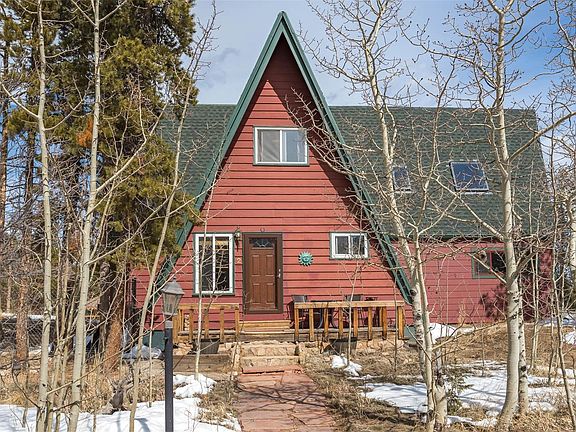 Remodeled Modified A-Frame w/gorgeous view of Long's Peak on lovely flat lot w/aspen & rock outcroppings. Main Level enters into tiled foyer with natural light. Remodeled Kitchen with SS appliances, gas range, granite counters, breakfast bar, radiant in-floor heat, soaring vaulted ceiling, expansive windows, skylight, all open to dining area w/glass door to wrap deck. Cozy Living Room with fireplace, hardwood floors, lots of windows & French doors open to spacious wrap deck - Great for BBQ's, entertaining family & friends. Main floor Master Bedroom with hardwood floors, remodeled shared full bath & linen closet. Upper Level hosts spacious bedrooms 2 & 3 w/newer plush carpet, shared full bath and office with VIEWS of Long's Peak. Horse Property - Enclosed fence area, barn with electricity & lights- Storage, RV parking. Easy access on County Maintained roads. A Must See!