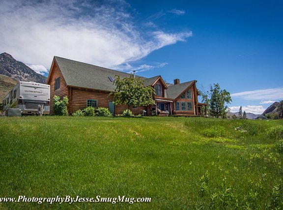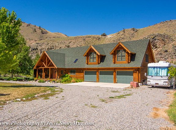 Salmon River Frontage luxury Idaho log home and your own piece of paradise. This amazing home is large enough to entertain groups or corporate events, yet cozy for intimate family gatherings. Vaulted ceilings, with plenty of windows and open floor plan with beautiful views of the river and mountains. The expansive kitchen is is a chef's delight with top of line with Granite counter tops, Viking range, wine refrigerator, rustic alder cabinets, a small warming wood stove in the dining room and large island providing plenty of work space. The living room features a massive river rock fireplace. Large master suite with walk-in closet spacious master bath with tumbled marble counter-tops. With rooms galore to gather in and spend time together, the loft area provides plenty of space with two bedrooms, office and 28x35 great room that can be used as apartment, separate living quarters or art studio. Two high efficiency heat pump systems. The property is surrounded by grass areas, deck and entertaining areas, water rights and irrigation pump are included. On 4.58 acres it has a three car insulated garage/shop with tons of storage and plenty of workspace. RV parking with both 30 and 50 amp service. Abundant wildlife and unlimited recreational opportunities make this a unique property