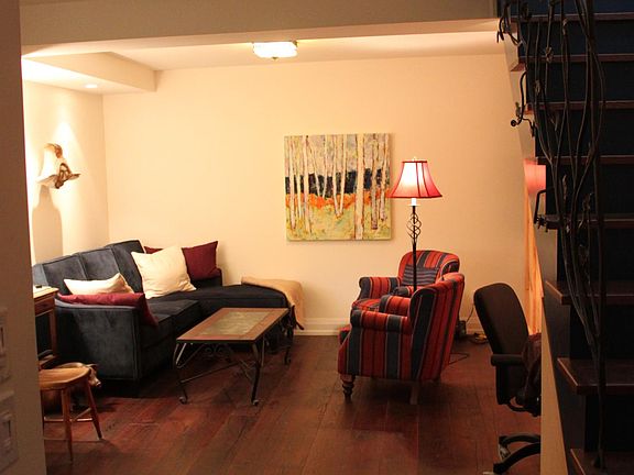 Exclusive 2 storey, detached, south-facing Coach House across from park; 1+ bedrooms (built-in fold-down queen bed for guests on separate floor.) Bay window, skylights, radiant in-floor heating and hardwood floors throughout, full tub and shower; quality appliances incl. AC/heat pump, washer/dryer, dishwasher, inline water purification; private shaded yard with trees and garden; custom renovated charm, partially furnished; built-in office space; minutes to groceries, restaurants, year-round farmers market, dedicated streetcar line and bike lanes, 20 minutes to downtown. High speed internet, centrally located in safe, friendly neighbourhood; supportive owners in adjacent home. Available August 1st $3,200+utilities Owner pays water; renter pays gas and electricity; street parking available; no smoking or pets; interview required; minimum one year lease