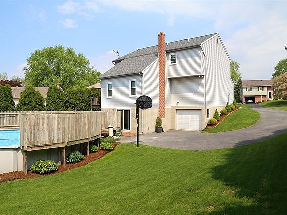 This is home... move-in ready with inviting above ground pool, spacious layout with attractive details like a vaulted family room ceiling and newer flooring on main level. Enjoy the outdoors on your private deck and patios. Unique split 2-car garage, one on main level, one on lower level. Finished walk-out basement. Newer roof and newer furnace with central air. Simply beautiful.
