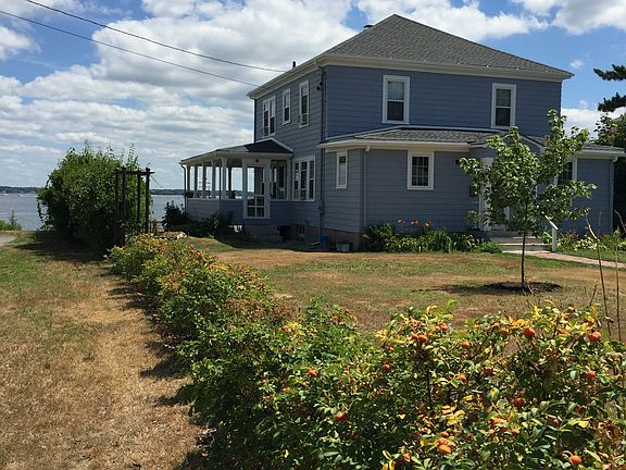ENDLESS potential in this rare waterfront w/gorgeous views,dock opp & wraparound porch to soak it all in! Completely renovated in 2016-17. New kitchen with honed carerra marble counters, farmer sink, shaker cabinets, pantry and new appliances, including gas stove. Updated heat, new roof, windows and doors. Double-sided fireplace between family room and living room. 2 car garage & no flood ins.! Refinished hardwood floors throughout. New master bedroom on first floor with ensuite bath/laundry room. 4 second floor bedrooms with 2 renovated bathrooms, one with original claw foot tub. House comes with a mooring for boating enthusiasts. New 20’x20’ detached garage.
