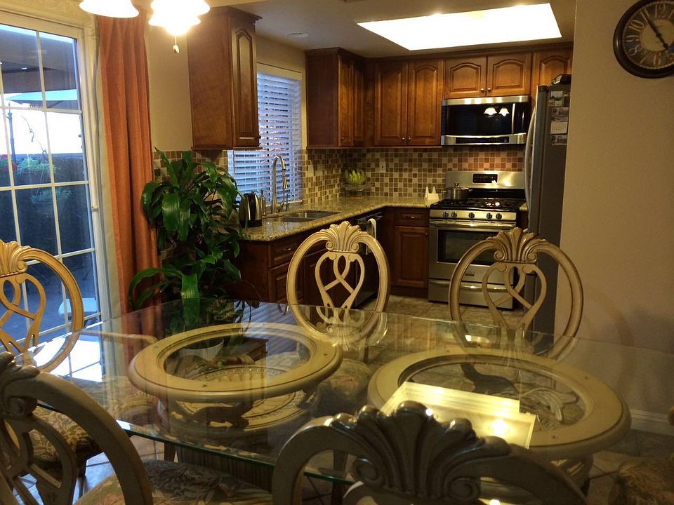 End unit detached house in beautiful, quite desired Brittany Community, very private back yard with a golden fish pound and a 180 degree overlooking view, 2 master suites with tree cabinet closets, tile floor through out down stair and wood laminate second floors and stairs, up grated kitchen cabinets and granite counter top, 2 car attached garage, a good size loft and a storage room, A Samsung refrigerator and washer and dryer provided, 1 mile to distinguish elementary school, 0.5 mile to Walmart, Regal movie cinema and other shopping's Owner pay HOA fees and Insurance, tenant pay electricity, gas, water, trash and cables and landscape