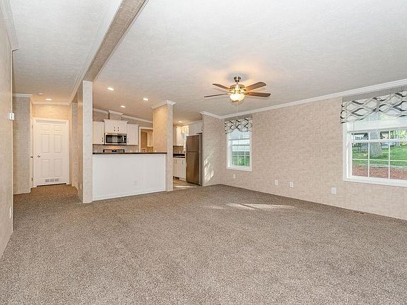 Welcome to 2 South Blueberry Lane located in the Briar Ridge Estates all ages community. This brand new 2022 home, features amazing natural light, a covered front porch, central a/c, and a storage shed. This home has 3 spacious bedrooms and the primary features a large closet, and a primary ensuite with a walk in oversized shower. The great room upon entering the home through the foyer has cathedral ceilings, and will welcome you into an open concept living, dining, kitchen space. This home is great for hosting holidays and entertaining. A recreation center and playground at the main office. Located just minutes from town for shopping and dining and healthcare facilities. Come see for yourself how wonderful this community and home is.