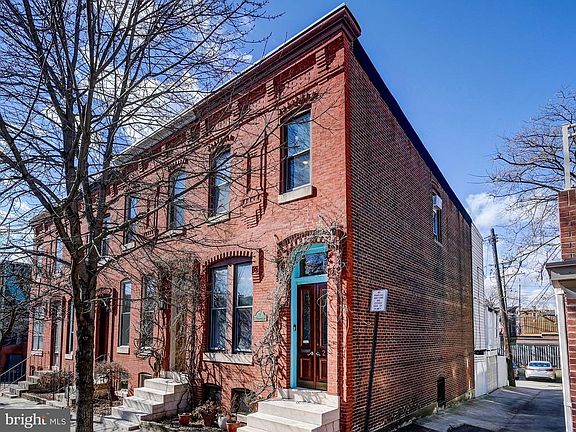 What a perfect package on the beautiful unit block of S. Collington Avenue in Butchers Hill: an end unit home full of character with covered parking, a small grass yard, and a large deck for entertaining right off the main level. The home has stunning wood double entry doors, original hardwood floors on the main and upper levels, exposed brick throughout, tall ceilings, beautiful original pocket doors, and a decorative fireplace on the main level. The layout works very well with an open living room and dining area, a kitchen, and a sunroom off the kitchen that opens to the deck. Upstairs, there is a large, loft-like primary bedroom with a skylight that allows light to flow through to the main level, a beautiful, newly renovated primary bathroom, a laundry, and an additional room perfect for an office or nursery. On your way to the lower level you will find a built in pantry, and downstairs, an additional bedroom and full bathroom, a large storage room, and a walk out to the covered parking and grass yard, all enclosed and ready for your furry friends. The outdoor areas are exceptional: it's rare to find a deck AND a yard AND parking, especially at this price point. The parking has an automatic garage door (remote operated) that rolls up and is open air to the yard. The deck is oversized and above the parking. Although the kitchen is on the small side, it is fully functional, and could be opened up to connect to the living and dining area and improved with a large island. This house has so much to offer for the price, and is ideally located one block from Patterson Park and a short walk to Hopkins medical campus, the waterfront, and all the great areas spots such as Charmed Kitchen, La Barrita, Water for Chocolate, Ministry of Brewing, Mary's Tavern and Butts and Bettys. 1 block to major bus routes and area hospital/University shuttles.