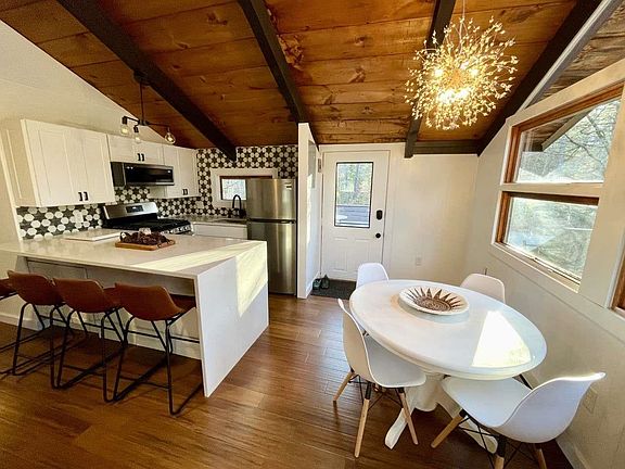 Newly renovated designer chalet features, new kitchen with stainless appliances, new tile bathroom, new flooring, new interior and exterior paint, new dual zone heat with smart thermostats that you can control from your phone, anywhere, new furniture that conveys with the sale and an interior and exterior security camera for added peace of mind. Bring your boats and kayaks because this property is just 1/2 mile to Conway Lake Beach and Boat launch. Located in a quiet treed neighborhood convenient to everything, yet nestled amid old growth forest. This chalet is loaded with charm and has all the modern conveniences. Unwind by the fire pit while listening to the relaxing sound of the babbling brook that flows through at the rear of the property. Minutes to North Conway and several ski mountains. Showings start Sun. 11/3