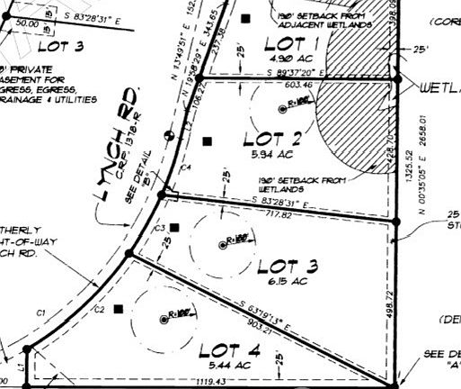 - Features: Paved, Brush, Evergreens, Heavily Forested, Partially Cleared