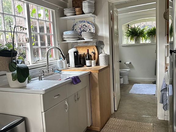 Quaint, historic guest cottage located within a couple of blocks away from Carmel by the Sea. Nestled into a lot and a half you will find this approximate 500 sq. ft. guest cottage through a gate and winding pathway containing 1 bedroom and 1 bathroom. Main part of the home has hardwood flooring and beamed ceilings throughout. A plethora of light pours through the classic Carmel casement windows located throughout the cottage. Living room has a wood burning fireplace and brick mantle. The spacious bedroom has stunning vauted ceilings with a loft area for additional storage and ample sized closet. Kitchen has small dining space, open shelves and refrigerator and stove. The spacious bathroom has multiple built-in storage and drawer spaces. Additional features include stand-up shower and pedestal sink. Cottage is heated by a wall heater. Soak up the sunshine in your own separate, private Carmel stone back patio space. Seeking 12 month lease. There is a main house on the Premises where the family visits occasionally. Trash and water are shared with main house. Separate PG&E meter. Sorry, no pets because of shared spaces. No laundry onsite. Application is available on Wayland Properties website and is $40 per adult.