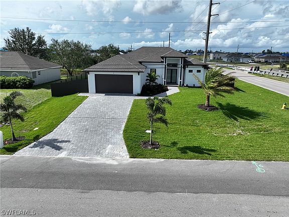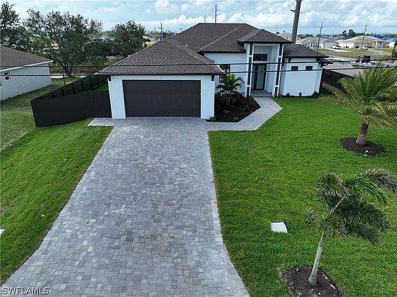 This Home Was not Affected by the Hurricane !!!!!!!! BEAUTIFUL BRAND NEW CONSTRUCTION -100% CONPLETED ,This 4 Bedroom, 3 Bath, 2 Car Garage home comes with all the Bells and Whistles. Home is 1, 983 sq ft under air with a total of 2, 733 sq ft with an oversized pool and located on a freshwater canal! Outdoor shower close to the pool and cozy outdoor kitchen with full size sink and plenty of counter space. The master bath offers a great shower with double sinks, The Kitchen has All Wood Cabinets, impact windows/doors, island w/the highest quality Quartz, Stainless Steel Appliances, and a huge Kitchen Island. This home has a Paver driveway, Paver pool deck, complete landscape package with sprinkler system. The interior specs are 12' Ceiling in living area, 8' door, Soffit lighting outside, Trey Ceilings in the living room, pendant lighting in the kitchen, pool bath and so much more. This home is located in the desirable SW section of Cape Coral, Along with a builder's warranty for one year from time of completion and 2-10 Home Buyers Warranty after that. Patio Fully Fenced.