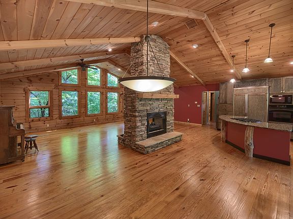 You will love the thought that went into the design of this custom 6" D log home w rustic accents. Conveniently located between Flat Rock/Hendersonville and historic town of Saluda. Easy access to I-25 and I-26. Open great room offers pine plank flooring, cathedral ceiling, transom windows for extra light and views. 2 way fireplace. Kitchen has custom wood cabinetry w some open shelving, farm sink, granite counters and island, Baasch DW, sub zero Ref. Master suite has cathedral ceiling, private, balcony, 3x8 shower w 2 shower heads, jetted tub, painted porcelain sinks, & a bidet. Guest room on main w private bath and balcony. LL offers a rec room with plumbing for a wet bar, workshop also plumbed for a bath, unique bark log wall in rec room, metal ceilings, 2 additional BR's and full baths, walk in storage room w shelves. Nicely landscaped yard with trails, 2 water features. Over sized 25x25 garage for lots of storage. Also has storage under garage and utility room area.