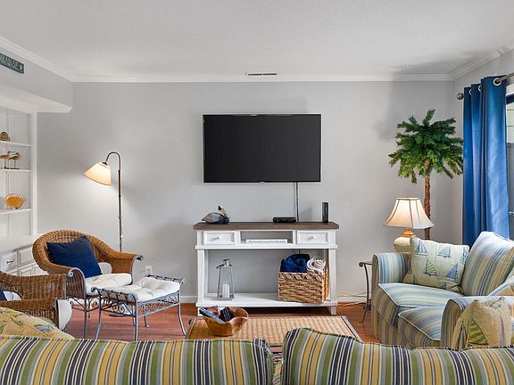 This Shipyard townhouse-style property has an inviting rustic theme, cheerful color palette combines comfort, convenience, and privacy. The first floor hosts the main living area complete with a living area w/sofa bed, dining room, and full kitchen. Guests have access to a half bath and laundry room on the first level. The second floor enters into a lovely loft area complete with a twin plus trundle. Two bedrooms are located upstairs, each has its own bathroom. Community pool access included. All utilities included. This listing is for multi-week or a 1 month rental
