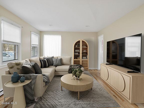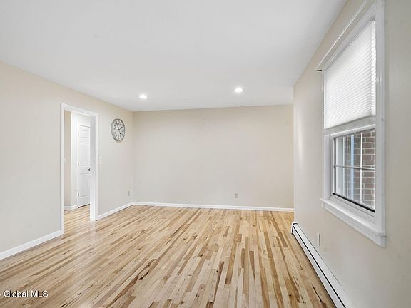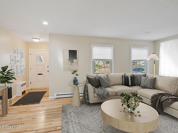 Welcome home to this updated brick Cape Cod located in a charming Delmar neighborhood. Walking distance to the blue-ribbon Elsmere Elementary School, shops, restaurants, Albany County Rail Trail, Normanside CC golf course, & more! This beautiful home is full of natural light. The updated kitchen has great cabinet space, recessed lighting and granite countertops. Enjoy two bedrooms and a full bathroom on the first floor, plus a second floor ensuite with another full bathroom with skylight, walk-in closet, built-in drawers, and new carpet. The partially finished basement includes a rec room, laundry room & workshop space. The one-car garage conveniently connects to a charming breezeway with steps the yard. Enjoy peace of mind with vinyl windows and a newer roof.