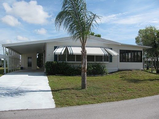 PRICE REDUCED!You are sure to enjoy resort style living in this full service, 55+ community! And you will certainly appreciate this home located on a CORNER lot in a low traffic area of SLCCV. It is non-pet.The longer carport can accommodate 2 vehicles, and trellis panels along the west side protect those vehicles from the afternoon sun. Located under the carport roof, the large storage shed is accessible in any weather.This home is offered partially furnished with appliances, kitchen flat-top stove, and newer washer and dryer in the laundry room. Check out the floor plan in the pictures. The galley style kitchen, other than the stove, is not shown as the seller is doing some cleaning.Entering the home through the front door of the family room, you'll look straight across to the sliding glass door that leads to the Florida room, new after 2005. Shaded by a bottlebrush tree, the Florida room will be comfortable any time. Just open the horizontal sliding windows and let the prevailing easterly breeze blow through. A rear door in the Florida room leads to the side and back yards.The carpet throughout the home is only three years old. The sliding doors have vertical blinds; the windows have mini-blinds.The spacious master bedroom has a king-size bed, and the guest room has a sofa bed but can accommodate a queen bed. The guest bathroom has a tub/shower, single vanity and a large floor to ceiling linen closet.You'll love the huge walk-in closet in the master bedroom that is a distinctive feature of the Twin Manor. You also have your own en suite master bath with a large shower stall. This bathroom also has a linen closet.The dining room has a glass slider with steps to the carport while the laundry room also has a door to the outside.The A/C is a unit that is believed to be about 10 years old. The shingled roof, new in 2005, passed the insurance company inspection.The new pre-approval process for prospective buyers, instituted by Spanish Lakes, begins June 1, 2014. Each person who plans to be on the lease must submit an application along with a $50 non-refundable fee per person to Spanish Lakes for credit and background checks. We can supply the application forms.Make an offer on the home you like! A $1,000 non-refundable deposit is required when the purchase and sale agreement is signed by both the buyer and the seller. However, if you are not approved, your deposit will be refunded.All sales are "AS IS". Once you have purchased a home in any Spanish Lakes Community, your monthly lot rent includes lawn mowing 21 times a year; yard waste, trash and recyclable pickup once a week. You also have free access to the owners-only golf course, swimming pool, tennis courts, horseshoe, bocce and shuffleboard courts, lending library, exercise room, clubhouse with auditorium, pool tables and more.TV/Internet is your choice, currently Comcast, Dish and Direct, and is not provided by any Spanish Lakes facility. Each homeowner is part owner of the water/sewer system, and as such the water usage is not metered. There are county restrictions on lawn watering. Our water treatment plant provides reverse osmosis water which is excellent right out of the tap. Our cost for 2014 is only $240 for the year. Now that's a bargain! *This applies to SLCCV only. Fairways has a water plant and the cost is slightly different. Spanish Lakes communities in Port St. Lucie have city water and sewer and are billed differently. During the "season" there are plenty of shows, dinners, activities and clubs to occupy your time. The tennis club offers lessons, as do some of the other groups.Within a three mile radius of Country Club Village, on U.S.1, Kings Highway and Indrio Road, you will find several restaurants, drugstores, banks, churches, gas stations, convenience stores, dental offices, dollar stores, a gym, a supermarket, a satellite post office, a thrift shop, MacDonald's and more! Spanish Lakes Country Club Village (SLCCV), in Fort Pierce, Florida, is located just