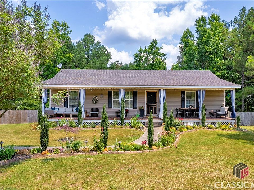 Adorable 3BR/2BA Oglethorpe County Home on 6.5+ Acres! Open Plan through living spaces, great for families or entertaining. Recently updated flooring and Kitchen, appliances also included in sale! Split Bedroom Layout affords privacy to the Primary Bedroom with private bath. Great outdoor living with covered front porch and back deck overlooking a fenced yard with fire pit. Tons of room to play and explore the property with established trails! Located in a peaceful and rural area, less than 10 minutes to schools, shopping, and dining in Lexington or Crawford, less than 30 minutes to Athens. MUST SEE!