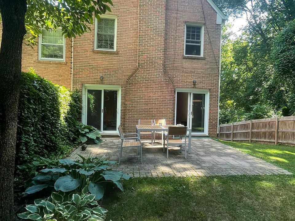 Phenomenal end row townhome in Bethesda! Nestled at the end of a quiet cul-de-sac, adjacent the Little Falls Stream Valley Park and the Capital Crescent Trail, sits this surprisingly spacious three-level, all-brick townhome. 3 bedroom, playroom, 3 bath. The home features a one-car garage (rarely available) and a surprisingly large as well as level, completely fenced, backyard with paver patio. Constructed in 1980, this home has been freshly painted both inside and out and extensively updated and improved including: a new heat pump, air-handler and programmable thermostat. All rooms with new wooden floors. Closet storage systems, two wood-burning fireplaces, and hardwood floors are just a few of the special amenities this home has to offer. Nearby walkable amenities include a trail leading directly to the Capital Crescent Trail and the Sumner Place shopping center with CVS Pharmacy, Starbucks, Safeway, Praline Bakery, and convenient specialty stores, offices and shops. No HOA fees. Wonderful garden next to the forest. Location is sunny in winter, shadow in summer. Perfect for family with small kids, play area in garden for kids. Renter is responsible for all utilities and lawn maintenance. No pets, no smoking.