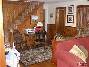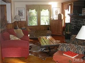 Quaint In-Town Antique Cape on the Sawmill Brook. Across from the new Library and a short stroll down to Veterans Park, jogging path, basketball, tennis courts, shops, school, new pavilion and town beach on Candlewood Lake. In the heart of Sherman Town Center! Comfortable Cape w/stone fireplace and hardwood floors in LR. Updated kitchen and baths. Main level master & laundry. Fully applianced. An oversized detached 2-car garage boasts a huge finished loft area fabulous additional drive-in storage in lower level with commercial possibilities! This property had tremendous potential for a variety of needs.