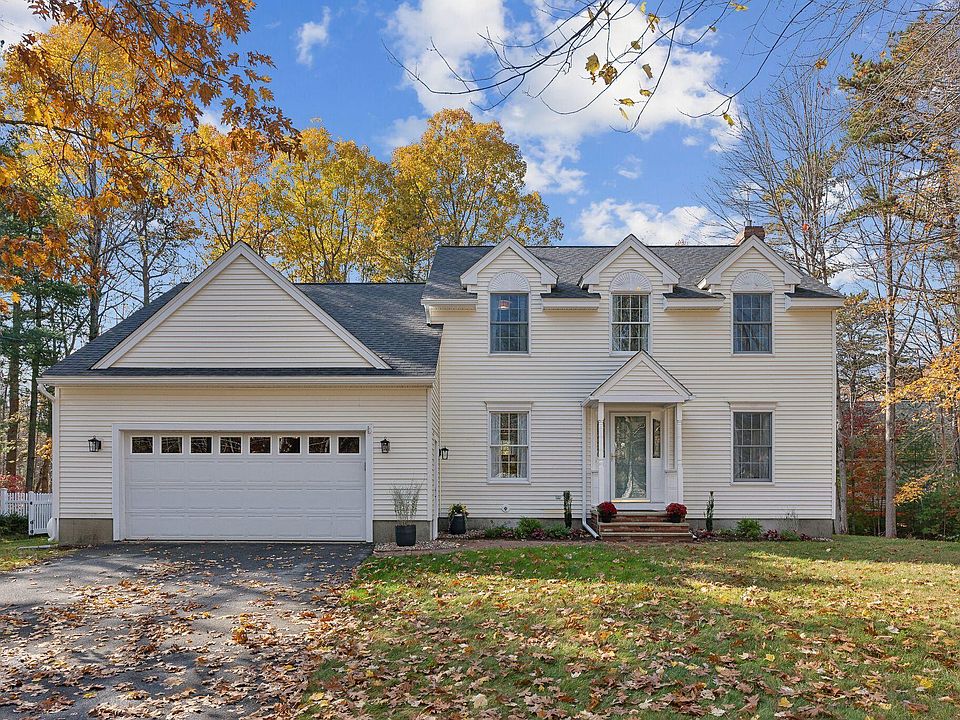 This 3BR/2.5BA contemporary colonial invites you into a light-filled, totally renovated stunning kitchen with vaulted ceilings, bright quartz counters, tile backsplash, custom cabinetry/ oversized pantry and eat-in kitchen island. New hardwood/refinished hardwood and tile floors on the first floor, new half bathroom and mudroom, custom built-ins and bookshelves added around the fireplace. Downstairs a separate den/study could also be a fourth bedroom. Upstairs a spacious primary suite with custom en suite bath, tile shower and heated floors; renovated full guest bathroom with tile shower, tile floors and new carpet throughout; a spacious bonus room over the garage is perfect for movie screenings, a large home office, guest room or playroom. The basement is accessible from the house or the garage and includes partially finished space with a small home office and new carpet. The unfinished side is open and clean with storage space, washer and dryer. This corner lot is fenced, well-landscaped. The living room opens onto a deck which steps down to a patio and fire pit area. The private backyard overlooks town-owned land. Owners have added heat pumps throughout the home, updated and remodeled with functionality and style in mind. Recent upgrades include heat pumps, kitchen and bathrooms, carpet and floors throughout (2022) roof (2021.) Generator hook-up, town water + sewer.