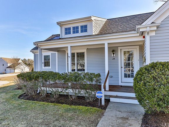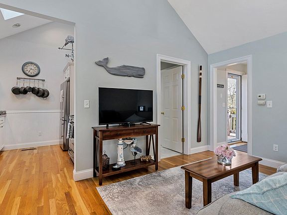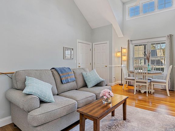 A beautiful move in ready unit located in the Main Street Village Condominium Complex. Detached 1 Car Garage large enough for most trucks, and two additional spaces as needed for parking. Guest and overflow parking also available. Cathedral ceiling in living room offers a very spacious feel to the home. Kitchen with granite, newer stainless steel appliances, refrigerator 2021, sky light, sparkling hardwood floors, and Central Air Conditioning. All window treatments stay with the home if desired. Large first floor bedroom with first floor laundry and first floor full bath. Private back deck, Back Patio and established landscaping with in ground sprinklers, and front porch all large enough for plenty of seating as desired for outdoor spaces. The back yard is open to woods and more birds than you can count. Fully finished lower level with built in cabinets for television, display and several storage areas in basement and in attic. This home is conveniently located close to Mashpee Commons, Mashpee Wakeby Pond, Village Center, Beaches, Shopping and much more.