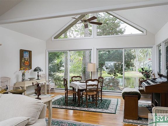 Enjoy one level living in this adorable courtyard patio home with beautiful lagoon views! You'll find an open design with vaulted ceilings, walls of windows and gleaming hardwood floors. The kitchen is a delight with granite, double ovens, a cooktop, breakfast bar and casual dining space. Entertaining is a cinch with a custom bar room which services the living room, dining room and family room. The garage has a golf cart space which is unique for some patio homes. The outdoor space is amazing with a patio setting that is the perfect spot to relax and enjoy nature and the tranquil lagoon views. Hurry, this one will go fast!